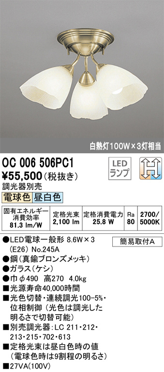 ODELIC ¥ª¡¼¥Ç¥ê¥Ã¥¯ ¥·¥ã¥ó¥Ç¥ê¥¢ OC006506PC1