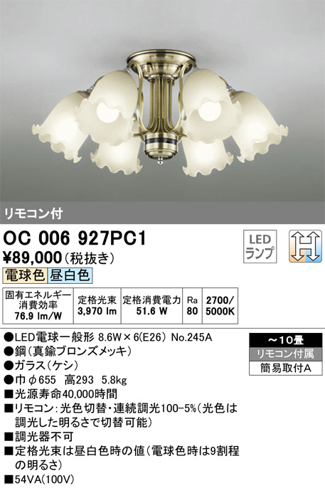 ODELIC ¥ª¡¼¥Ç¥ê¥Ã¥¯ ¥·¥ã¥ó¥Ç¥ê¥¢ OC006927PC1