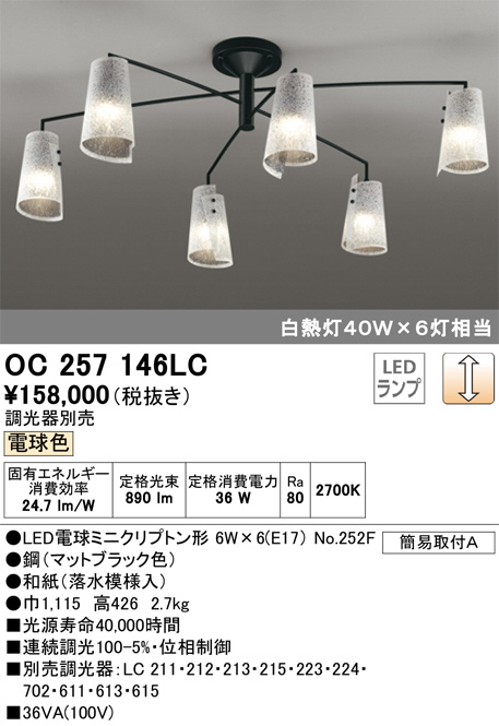 ODELIC ¥ª¡¼¥Ç¥ê¥Ã¥¯ ¥·¥ã¥ó¥Ç¥ê¥¢ OC257146LC