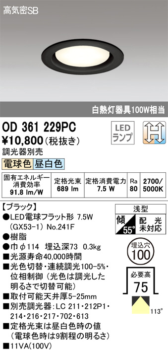 ODELIC ¥ª¡¼¥Ç¥ê¥Ã¥¯ ¥À¥¦¥ó¥é¥¤¥È OD361229PC