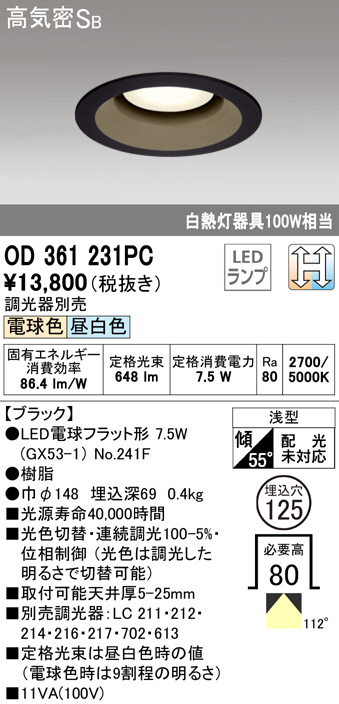 ODELIC ¥ª¡¼¥Ç¥ê¥Ã¥¯ ¥À¥¦¥ó¥é¥¤¥È OD361231PC