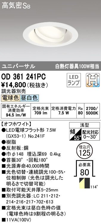 ODELIC ¥ª¡¼¥Ç¥ê¥Ã¥¯ ¥À¥¦¥ó¥é¥¤¥È OD361241PC