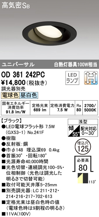 ODELIC ¥ª¡¼¥Ç¥ê¥Ã¥¯ ¥À¥¦¥ó¥é¥¤¥È OD361242PC