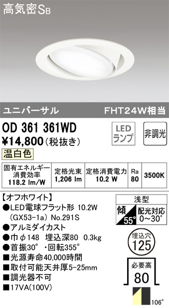 ODELIC ¥ª¡¼¥Ç¥ê¥Ã¥¯ ¥À¥¦¥ó¥é¥¤¥È OD361361WD