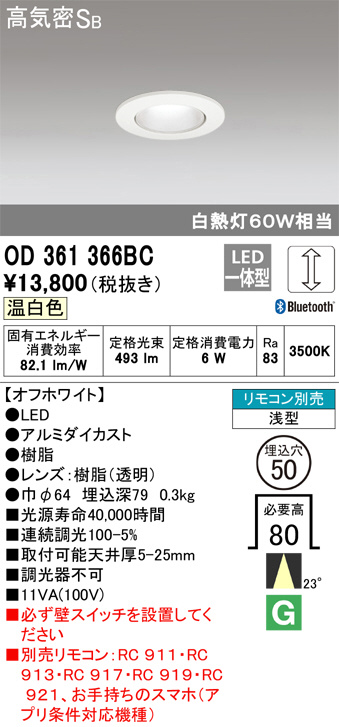 ODELIC ¥ª¡¼¥Ç¥ê¥Ã¥¯ ¥À¥¦¥ó¥é¥¤¥È OD361366BC