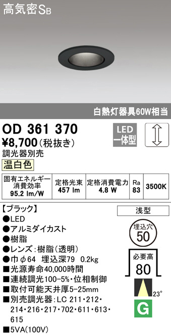 ODELIC ¥ª¡¼¥Ç¥ê¥Ã¥¯ ¥À¥¦¥ó¥é¥¤¥È OD361370