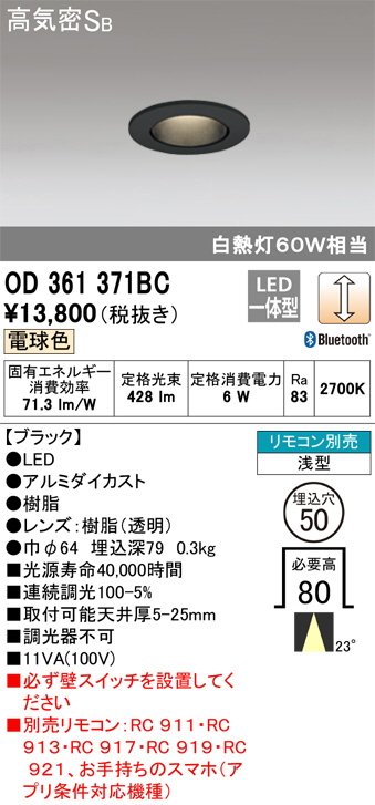 ODELIC ¥ª¡¼¥Ç¥ê¥Ã¥¯ ¥À¥¦¥ó¥é¥¤¥È OD361371BC