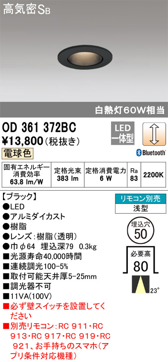 ODELIC ¥ª¡¼¥Ç¥ê¥Ã¥¯ ¥À¥¦¥ó¥é¥¤¥È OD361372BC