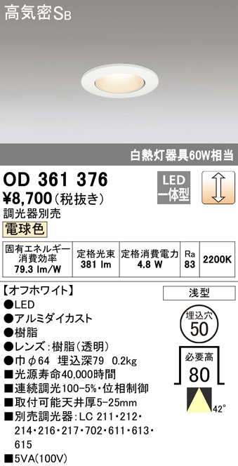 ODELIC ¥ª¡¼¥Ç¥ê¥Ã¥¯ ¥À¥¦¥ó¥é¥¤¥È OD361376