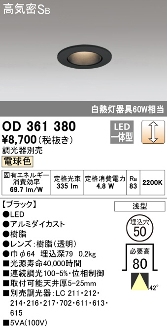 ODELIC ¥ª¡¼¥Ç¥ê¥Ã¥¯ ¥À¥¦¥ó¥é¥¤¥È OD361380