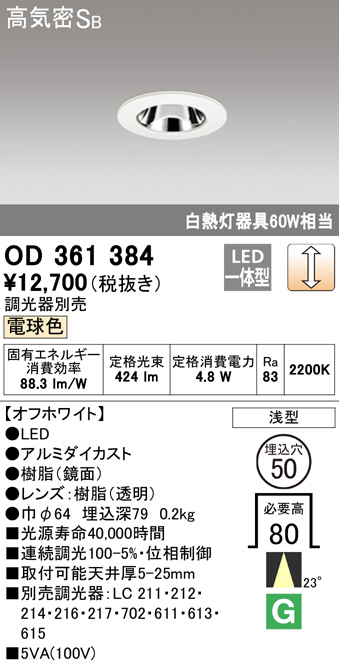 ODELIC ¥ª¡¼¥Ç¥ê¥Ã¥¯ ¥À¥¦¥ó¥é¥¤¥È OD361384