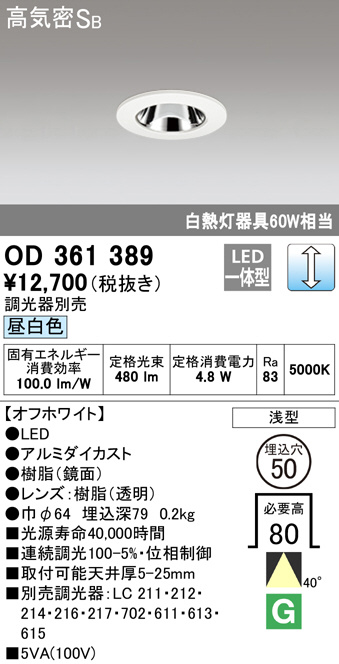 ODELIC ¥ª¡¼¥Ç¥ê¥Ã¥¯ ¥À¥¦¥ó¥é¥¤¥È OD361389