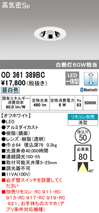 ODELIC ¥ª¡¼¥Ç¥ê¥Ã¥¯ ¥À¥¦¥ó¥é¥¤¥È OD361389BC
