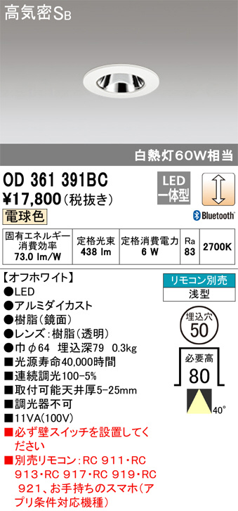 ODELIC ¥ª¡¼¥Ç¥ê¥Ã¥¯ ¥À¥¦¥ó¥é¥¤¥È OD361391BC