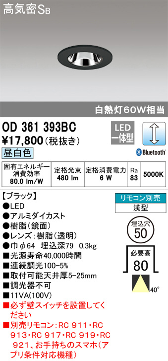 ODELIC ¥ª¡¼¥Ç¥ê¥Ã¥¯ ¥À¥¦¥ó¥é¥¤¥È OD361393BC