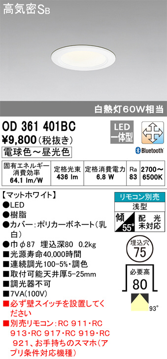 ODELIC ¥ª¡¼¥Ç¥ê¥Ã¥¯ ¥À¥¦¥ó¥é¥¤¥È OD361401BC