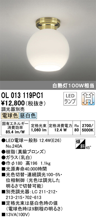 ODELIC ¥ª¡¼¥Ç¥ê¥Ã¥¯ ¾®·¿¥·¡¼¥ê¥ó¥°¥é¥¤¥È OL013119PC1