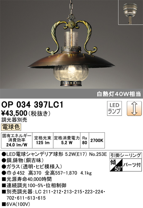 ODELIC ¥ª¡¼¥Ç¥ê¥Ã¥¯ ¥Ú¥ó¥À¥ó¥È¥é¥¤¥È OP034397LC1
