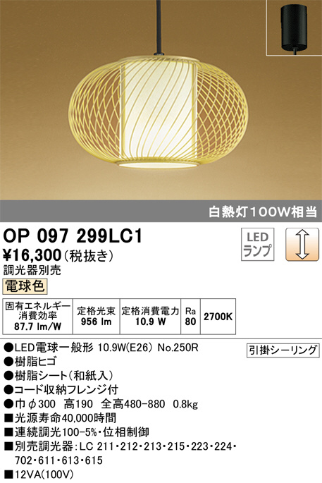 ODELIC ¥ª¡¼¥Ç¥ê¥Ã¥¯ ¥Ú¥ó¥À¥ó¥È¥é¥¤¥È OP097299LC1