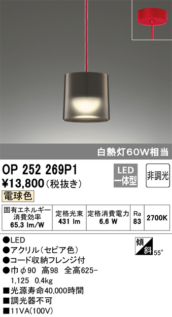 ODELIC ¥ª¡¼¥Ç¥ê¥Ã¥¯ ¥Ú¥ó¥À¥ó¥È¥é¥¤¥È OP252269P1