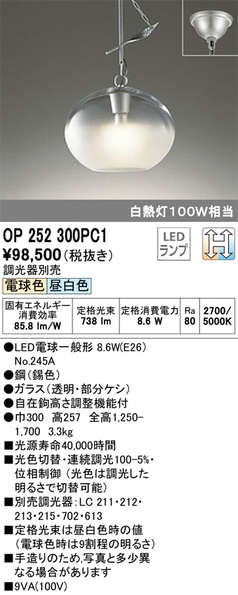 ODELIC ¥ª¡¼¥Ç¥ê¥Ã¥¯ ¥Ú¥ó¥À¥ó¥È¥é¥¤¥È OP252300PC1