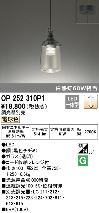 ODELIC ¥ª¡¼¥Ç¥ê¥Ã¥¯ ¥Ú¥ó¥À¥ó¥È¥é¥¤¥È OP252310P1