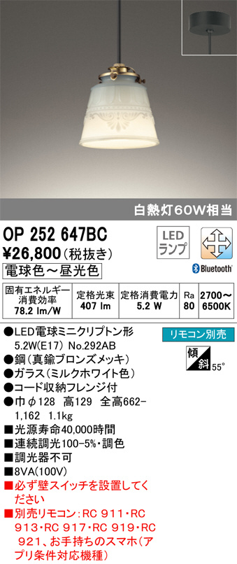 ODELIC ¥ª¡¼¥Ç¥ê¥Ã¥¯ ¥Ú¥ó¥À¥ó¥È¥é¥¤¥È OP252647BC