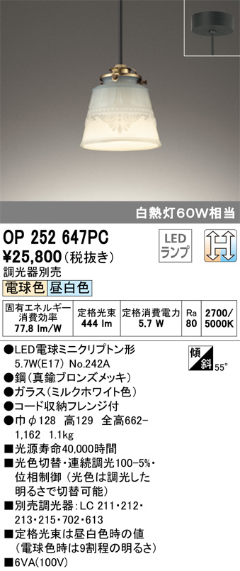 ODELIC ¥ª¡¼¥Ç¥ê¥Ã¥¯ ¥Ú¥ó¥À¥ó¥È¥é¥¤¥È OP252647PC