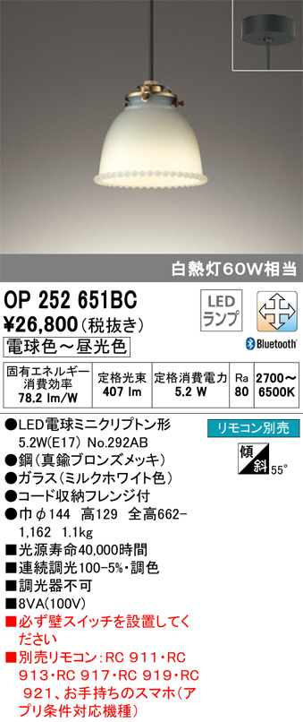 ODELIC ¥ª¡¼¥Ç¥ê¥Ã¥¯ ¥Ú¥ó¥À¥ó¥È¥é¥¤¥È OP252651BC