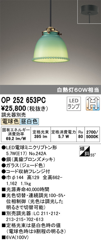 ODELIC ¥ª¡¼¥Ç¥ê¥Ã¥¯ ¥Ú¥ó¥À¥ó¥È¥é¥¤¥È OP252653PC