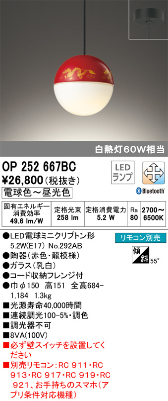 ODELIC ¥ª¡¼¥Ç¥ê¥Ã¥¯ ¥Ú¥ó¥À¥ó¥È¥é¥¤¥È OP252667BC