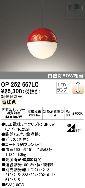 ODELIC ¥ª¡¼¥Ç¥ê¥Ã¥¯ ¥Ú¥ó¥À¥ó¥È¥é¥¤¥È OP252667LC