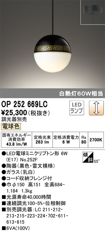 ODELIC ¥ª¡¼¥Ç¥ê¥Ã¥¯ ¥Ú¥ó¥À¥ó¥È¥é¥¤¥È OP252669LC