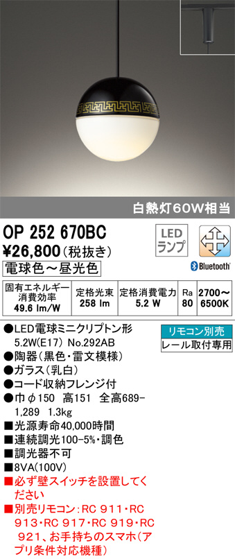ODELIC ¥ª¡¼¥Ç¥ê¥Ã¥¯ ¥Ú¥ó¥À¥ó¥È¥é¥¤¥È OP252670BC