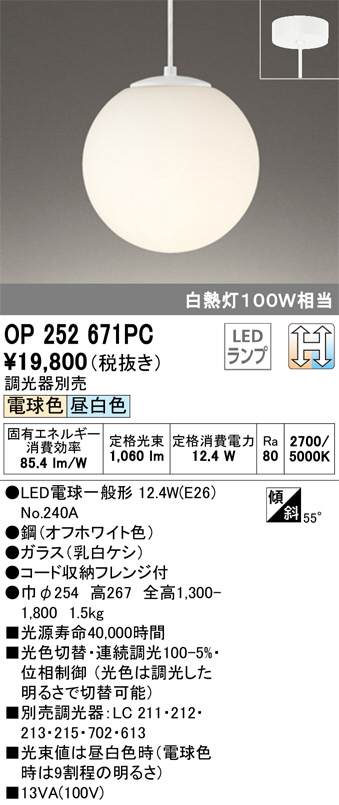 ODELIC ¥ª¡¼¥Ç¥ê¥Ã¥¯ ¥Ú¥ó¥À¥ó¥È¥é¥¤¥È OP252671PC