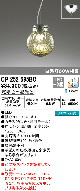 ODELIC ¥ª¡¼¥Ç¥ê¥Ã¥¯ ¥Ú¥ó¥À¥ó¥È¥é¥¤¥È OP252695BC
