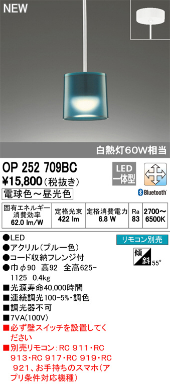 ODELIC ¥ª¡¼¥Ç¥ê¥Ã¥¯ ¥Ú¥ó¥À¥ó¥È¥é¥¤¥È OP252709BC