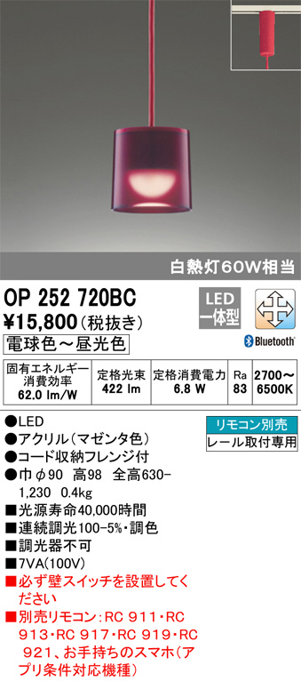 ODELIC ¥ª¡¼¥Ç¥ê¥Ã¥¯ ¥Ú¥ó¥À¥ó¥È¥é¥¤¥È OP252720BC