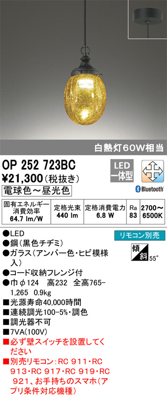 ODELIC ¥ª¡¼¥Ç¥ê¥Ã¥¯ ¥Ú¥ó¥À¥ó¥È¥é¥¤¥È OP252723BC