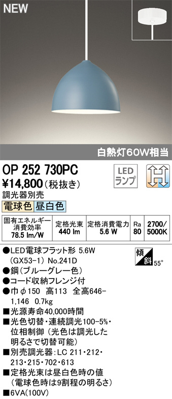 ODELIC ¥ª¡¼¥Ç¥ê¥Ã¥¯ ¥Ú¥ó¥À¥ó¥È¥é¥¤¥È OP252730PC