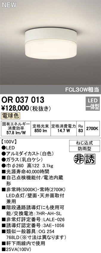 ODELIC ¥ª¡¼¥Ç¥ê¥Ã¥¯ Èó¾ïÅô¡¦Í¶Æ³Åô OR037013