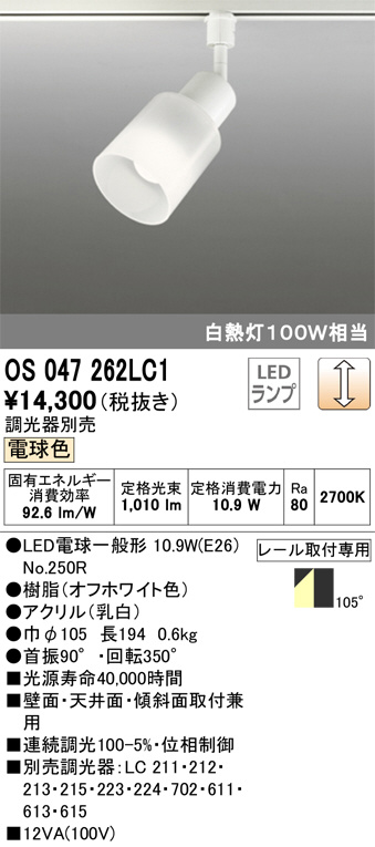 ODELIC ¥ª¡¼¥Ç¥ê¥Ã¥¯ ¥¹¥Ý¥Ã¥È¥é¥¤¥È OS047262LC1