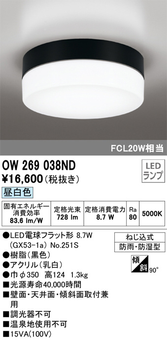 ODELIC ¥ª¡¼¥Ç¥ê¥Ã¥¯ ¥Ð¥¹¥ë¡¼¥à¥é¥¤¥È OW269038ND