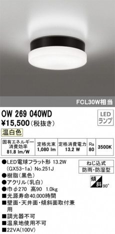 ODELIC ¥ª¡¼¥Ç¥ê¥Ã¥¯ ¥Ð¥¹¥ë¡¼¥à¥é¥¤¥È OW269040WD