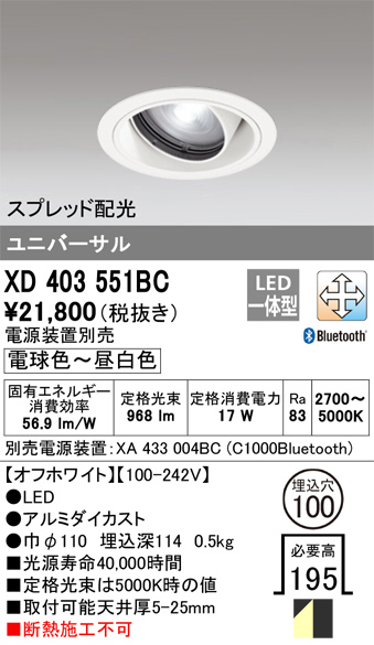 ODELIC ¥ª¡¼¥Ç¥ê¥Ã¥¯ ¥À¥¦¥ó¥é¥¤¥È XD403551BC