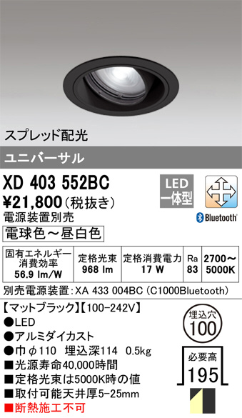 ODELIC ¥ª¡¼¥Ç¥ê¥Ã¥¯ ¥À¥¦¥ó¥é¥¤¥È XD403552BC