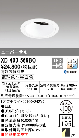 ODELIC ¥ª¡¼¥Ç¥ê¥Ã¥¯ ¥À¥¦¥ó¥é¥¤¥È XD403569BC