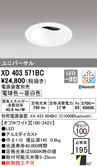 ODELIC ¥ª¡¼¥Ç¥ê¥Ã¥¯ ¥À¥¦¥ó¥é¥¤¥È XD403571BC