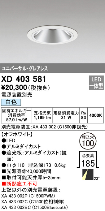 ODELIC ¥ª¡¼¥Ç¥ê¥Ã¥¯ ¥À¥¦¥ó¥é¥¤¥È XD403581