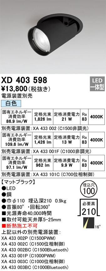 ODELIC ¥ª¡¼¥Ç¥ê¥Ã¥¯ ¥À¥¦¥ó¥é¥¤¥È XD403598
